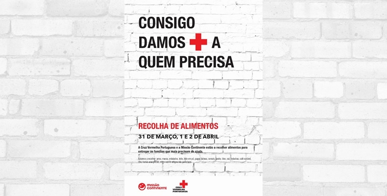 De 31 de março a 02 de Abril a Cruz Vermelha Portuguesa e Missão Continente promovem recolha de alimentos. A iniciativa decorre nas lojas Continente e Meu Super de todo o país Os alimentos recolhidos revertem a favor de famílias sinalizadas pela Cruz Vermelha Portuguesa